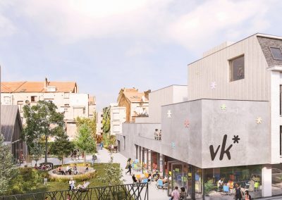 De werken zijn gestart in 2019, om in 2021 de deuren te openen van een vernieuwd gemeenschapscentrum én een splinternieuwe concertzaal. Maar dat is niet alles: er komt ook een tuin die toegankelijk is voor de hele buurt. Deze tuin creëert de VK samen met de buurt.