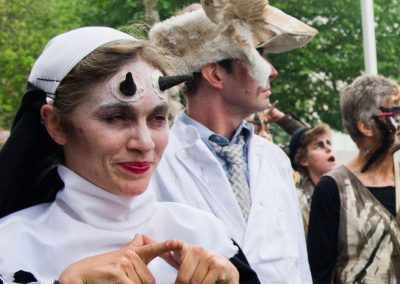 Een stoet van kleurrijke praalwagens met gekke kleine accessoires, vervaardigd met weinig middelen en veel verbeelding, die vrolijke boodschappen de wereld in sturen. Zang, dans, fanfares, acrobatie en vreemde tuigen… De Zinneke Parade maakte een grootse herintrede. Een creatief en feestelijk elan, een heerlijke mix van mensen uit alle windstreken, jongeren van alle huidskleuren en alle origines hebben iedereen die met hen mee wilde feesten vrolijk mee op sleeptouw genomen in het feestgedruis.